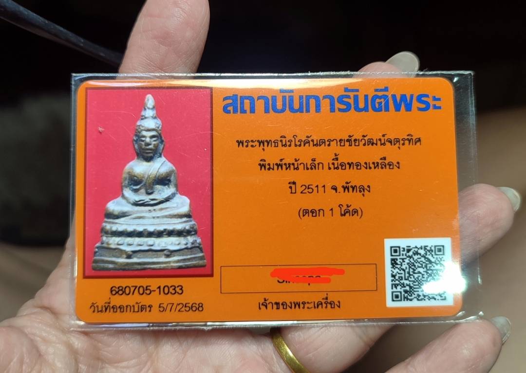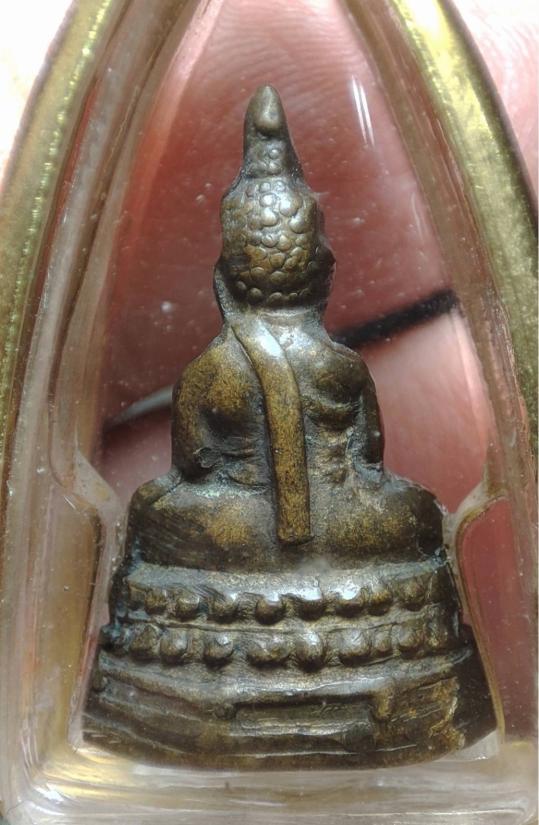 เคาะเดียวแดง พระพุทธนิรโรคันตรายชัยวัฒน์จตุรทิศ พิมพ์หน้าเล็ก เนื้อทองเหลืองปี2511 จ.พัทลุง(ตอก1โค้ต)พร้อมกรอบไมครอนเอาขึ้นคอได้เลย