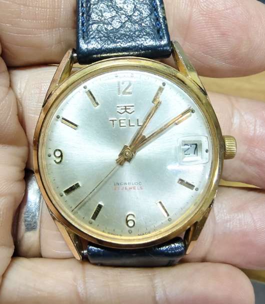 นาฬิกาสวิส ระบบลาน ยี่ห้อ Tell ตัวเรียนทองหุ้ม สวิตเซอร์แลนด์ยี่ห้อเก่าเดินเที่ยงสภาพสวยงาม