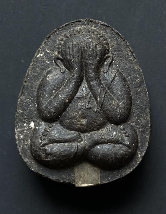 พระปิดตายันต์ดวงเล็ก ปี2523 สมเด็จพระญาณสังวร (เจริญ) วัดบวรนิเวศ_(เนื้อผงใบลานดำปลดหนี้)_พิมพ์หนา_ |