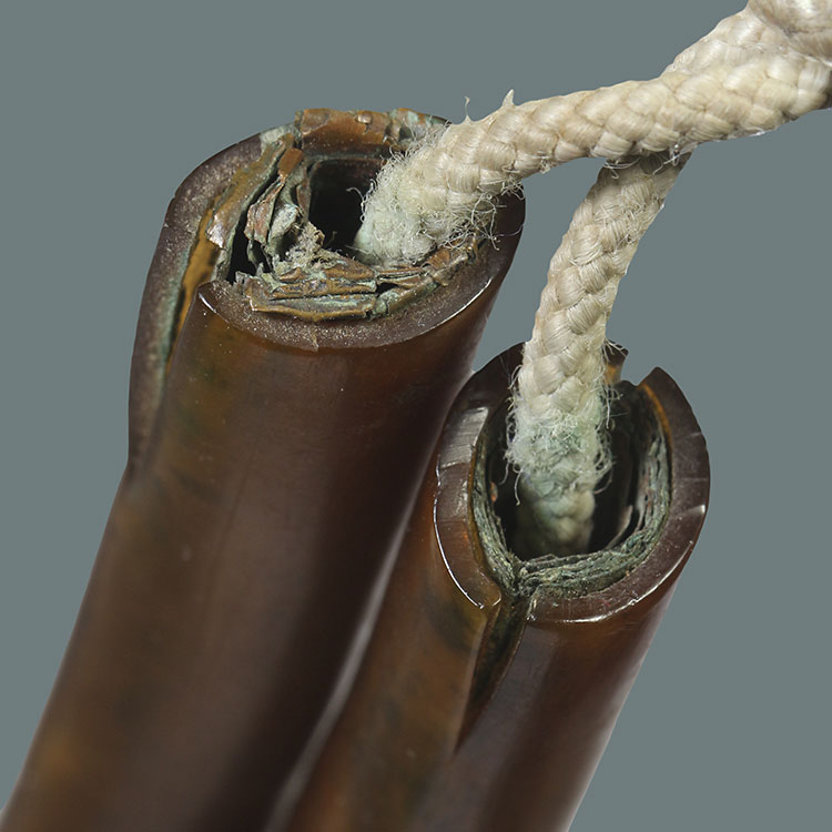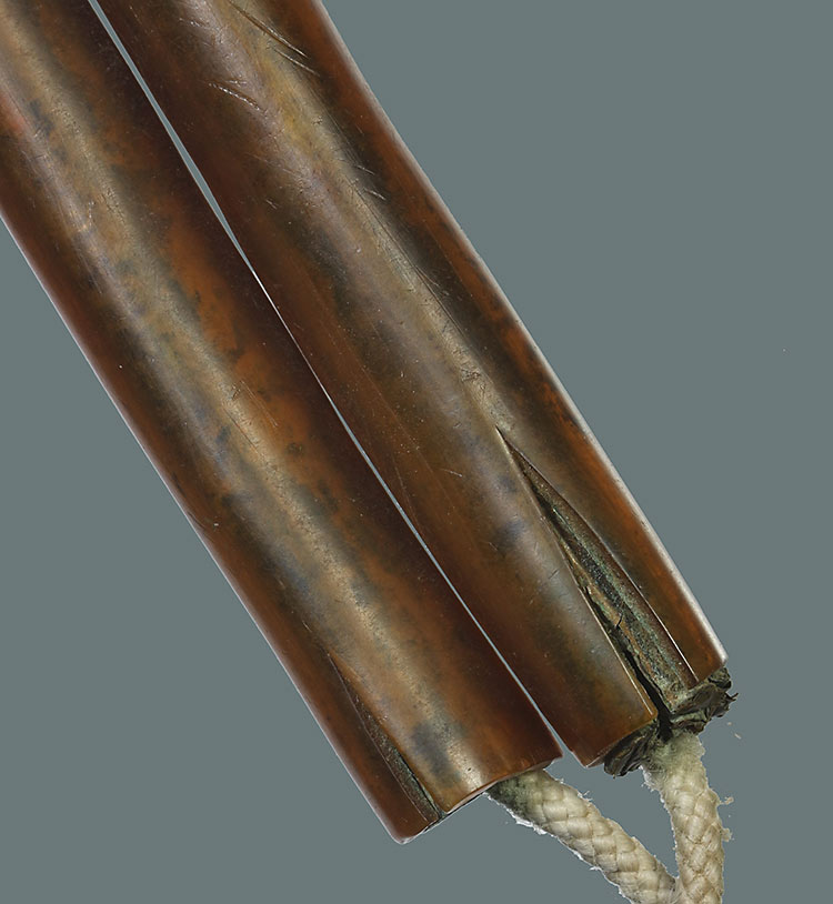 วัดใจ**เครื่องราง ตะกรุดคู่ เนื้อทองแดง ยาว5นิ้ว ไม่ทราบที่...ตามสภาพครับ |