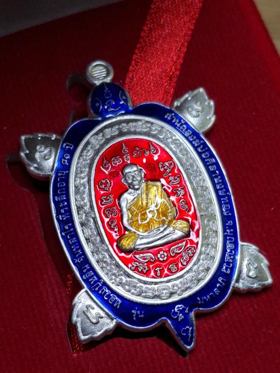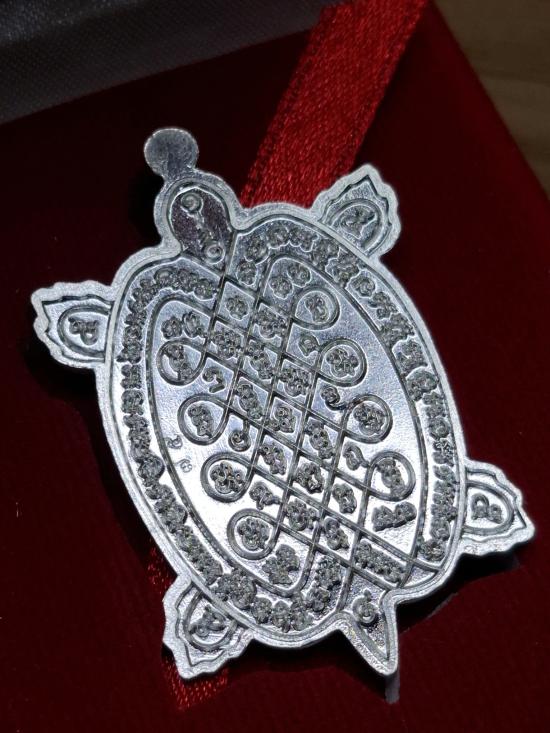 พญาเต่าเรือน มหาลาภ หลวงปู่หลิน จันทสาโร สำนักสงฆ์บ่อศิลาหงษ์ทอง มุกดาหาร เนื้อเงิน ลงยา เลข75 น้ำหนัก 24.27 กรัม