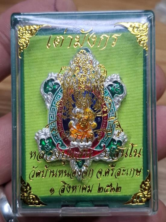 เหรียญเต่ามังกรโคตรเศรษฐี หลวงปู่เเสน วัดบ้านหนองจิก ศรีษะเกษ ปี 2562 เนื้อเงินลงยา เลข 100 น้ำหนัก 22.79 กรัม