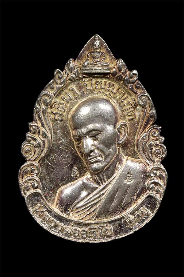 เหรียญหล่อรุ่นแรก หลวงพ่ออริโย ภิกขุ วัดสวนธรรมรักษา จ.ชัยนาท ปี 2562 ตอก 2 โค๊ด มีจาร เนื้อเงิน หนัก 11.73 กรัม