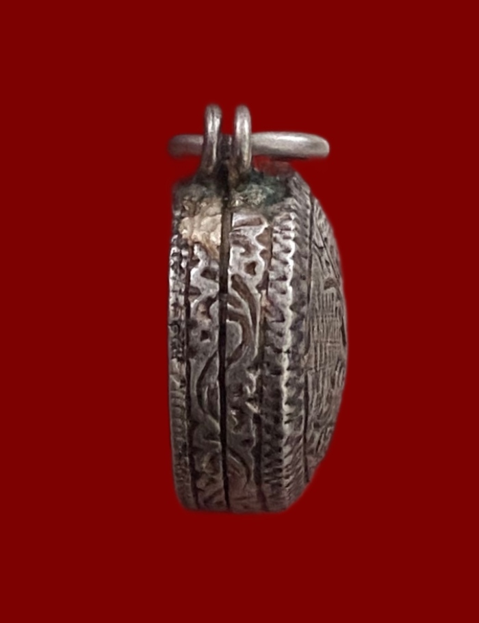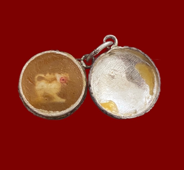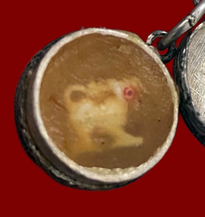 สีผึ้งตลับเงินแกะกลมเล็ก ด้านในมีสิงห์ 1 ตัว ชอบเชิญ