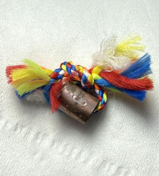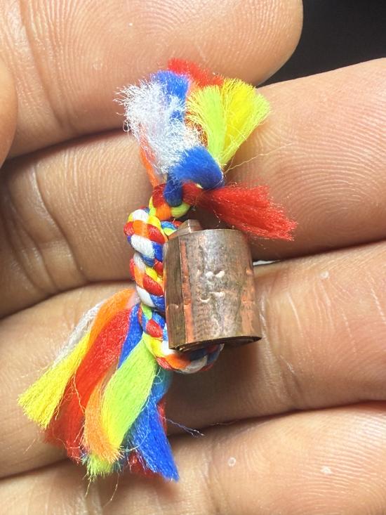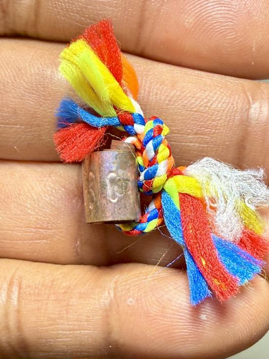 ตะกรุดลูกอมโลกธาตุ เนื้อทองแดงร้อยไหม5สี เนื้อโลพหะ ไม่ทราบที่ พร้อมกล่องครับ