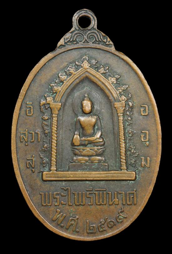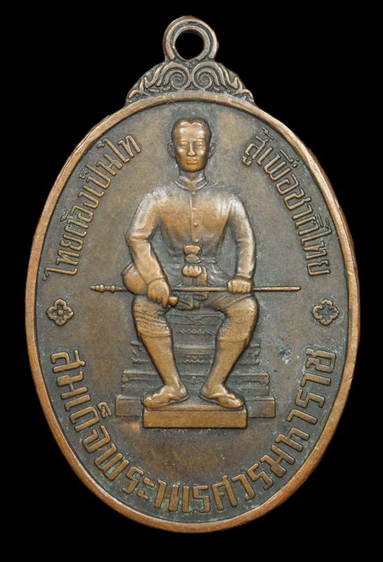 เหรียญหนึ่งในสยาม รูปไข่ ด้านหน้าสมเด็จพระนเรศวรมหาราช ด้านหลังพระไพรีพินาศ ปี2519 องค์ที่ 3