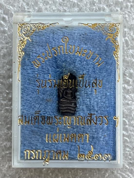 พระปรกใบมะขาม รุ่น ร่มเย็นเป็นสุข สมเด็จญาณสังวรฯ วัดบวรนิเวศฯ กรุงเทพ ปี2533 สวยกล่องเดิม
