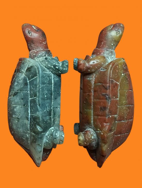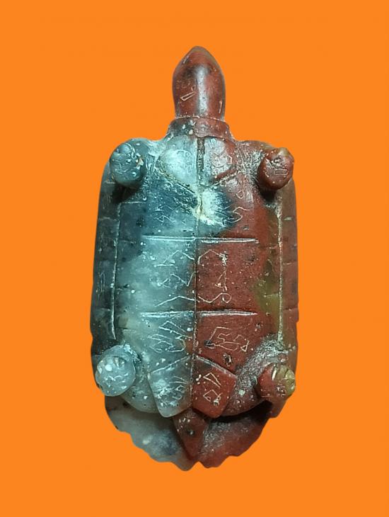 พญาเต่าเรือน ยุคต้น หลวงพ่อสนิท วัดลำบัวลอย นครนายก แกะจากหินสบู่ ขนาด 3.5 x 1.5 ซม. สีแดงขาวดำ มีรอยจาร เก่าถึงยุค สวยครับ