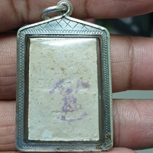 สมเด็จพุทธกวัก หลวงพ่อกวย วัดโฆสิตาราม จ.ชัยนาท ปี 2539 หลังปั้มยันต์ตุ๊กตา เลี่ยมกรอบเงิน (ไม่มีกล่อง)
