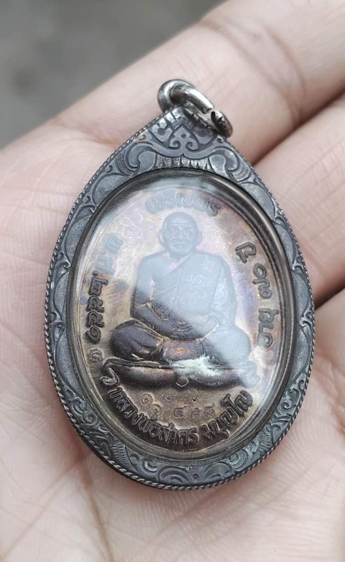 เหรียญเจริญพรบน หลวงพ่อสาคร วัดหนองกรับ เนื้อทองแดง สภาพสวย เลี่ยมเงิน จาร์มือหลวงพ่อเลยนะ
