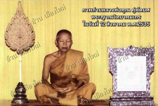 ++วัตถุประสงค์ : เนื่องในมหามงคลเฉลิมพระชนมพรรษา 5 รอบสมเด็จพระนางเจ้าสิริกิติ์ พระบรมราชินีนาถ ในวันที่ 12 สิงหาคม พ.ศ.2535 ทรงพระกรุณาโปรดเกล้า สถาปนาสมณศักดิ์พระเถระทั่วประเทศเป็นกรณีพิเศษในโอกาสนี้ หลวงพ่อคูณ ปริสุทฺโธ วัดบ้านไร่ ได้รับพระกรุณาโปรดเกล้าเลื่อนสมณศักดิ์ เป็นพระราชาคณะชั้นสามัญยก ฝ่ายวิปัสสนาธุระ ในราชทินนามที่ พระญาณวิทยาคมเถร ( สย.วิ. ) และคณะศิษย์ได้จัดทำเหรียญหลังพัดยศเพื่อ แจกทานครั้งที่ 1 ในวันครบรอบวันเกิด วันที่ 4 ตุลาคม พ.ศ .2535 ใน 2 วาระมงคล พร้อมๆกัน