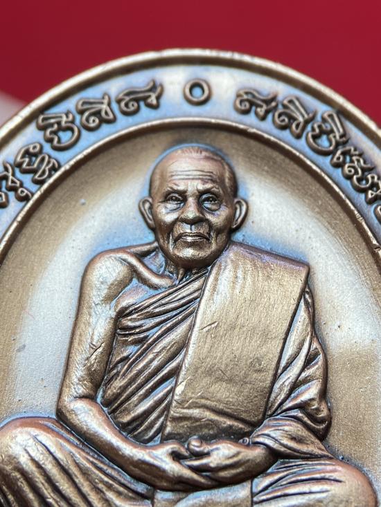 เหรียญ หลวงปู่เฮงปภาโส รุ่น รวย ๕ แชะ เลข54 เนื้อทองแดงซาตินพิเศษหลังเรียบพร้อมกล่องเดิม