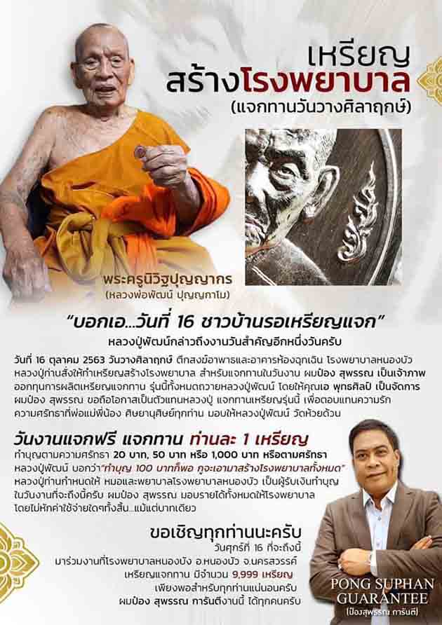 @@@ หลวงพ่อพัฒน์ ปุญญกาโม เหรียญที่ระลึก รุ่นสร้างโรงพยาบาล เนื้อเงิน no.56 สภาพสวย จำนวนสร้างน้อยน่าสะสมครับ @@@