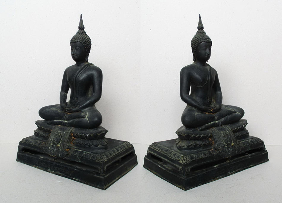 เนื้อโลหะรมมันปูผิวหิ้ง ใต้ฐานหล่อดินไทย !!