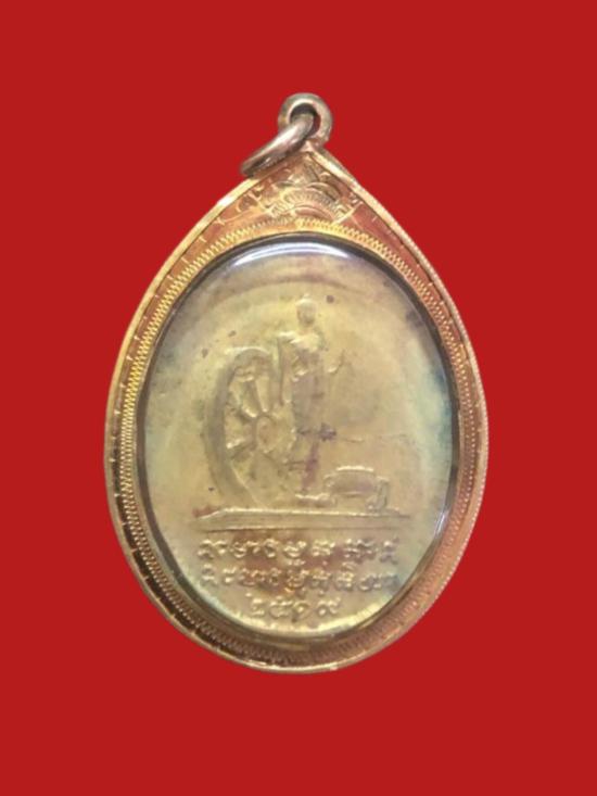 เหรียญพระอาจารย์ฝั้น วัดป่าอุดมสมพร รุ่นสุดท้าย เนื้อทองแดง ปี2519 จ.สกลนคร เลี่ยมทองพร้อมบัตรรับรอง