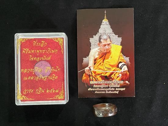 ลูกอม พิธีปลุกเสกรุ่นโชคอะนันต์ หลวงปู่ศิลา สิริจันโท สีชมพูตอกโค็ท หมายเลข 6752 พร้อมแหวนศรพระราม ขนาด 59 หมายเลข 1596 |