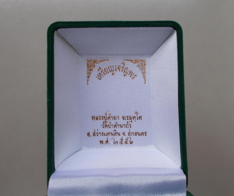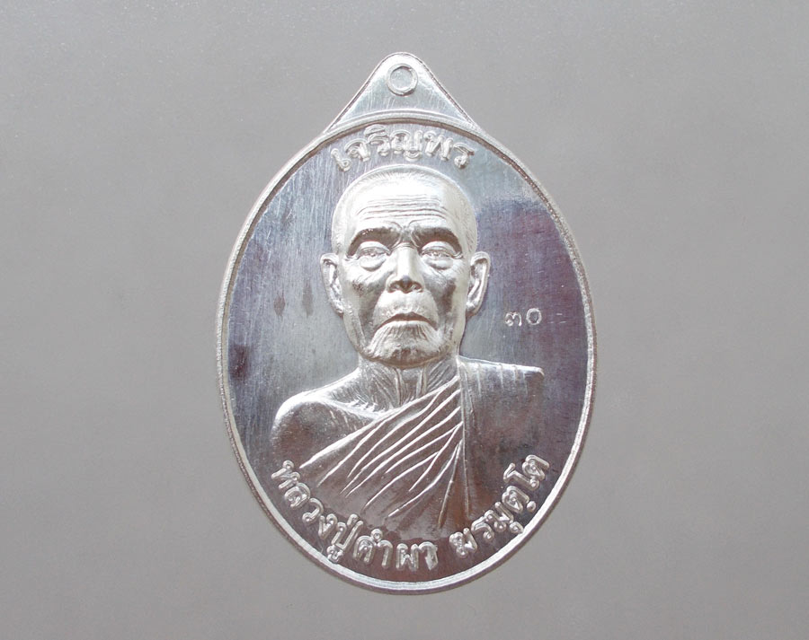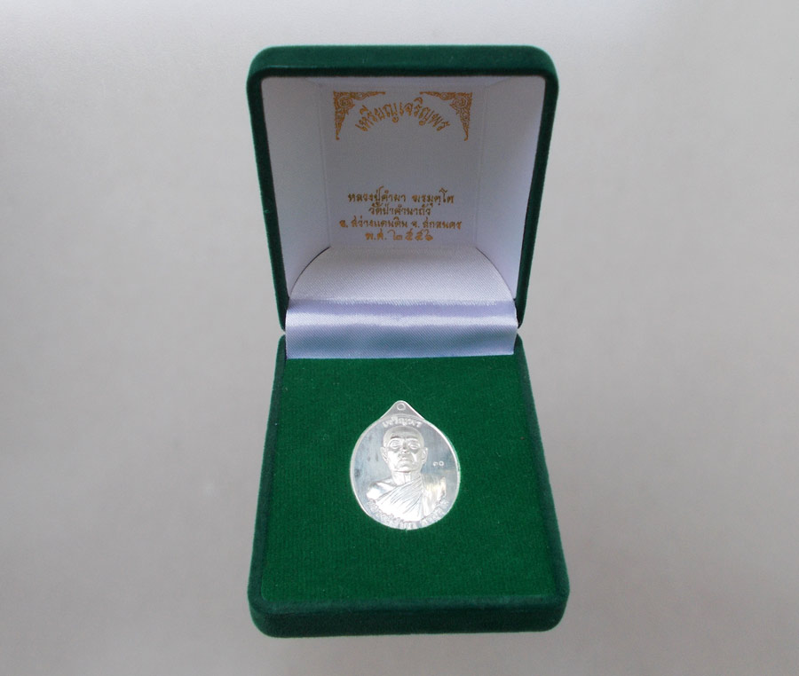 เหรียญเจริญพร ไม่มีห่วง หลวงปู่คำผา ฆรมุตฺโต วัดป่าคำนกถัว จ .สกลนคร พ.ศ.2556 เนื้อเงินหลังเรียบ ตอกโค๊ต ตอกเลข นอนกล่องเดิมๆ !!
