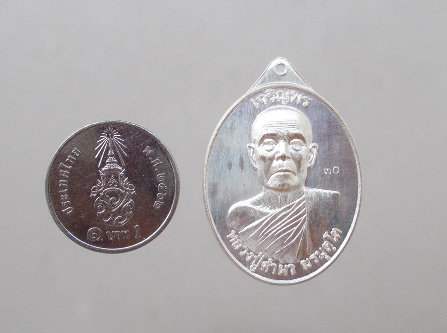 เนื้อเงินหลังเรียบ ขนาด 2.5 ซ.ม. X 3.5 ซ.ม.