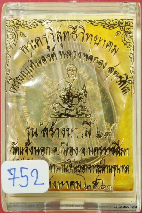 เหรียญหลวงพ่อทอง รุ่นสร้างบารมี ปี 2560 เนื้อทองฝาบาตร หมายเลข 752 |