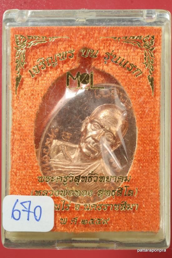 เหรียญหลวงพ่อทอง รุ่นเจริญพรบน ปี 2559 เนื้อทองแดง หมายเลข 670
