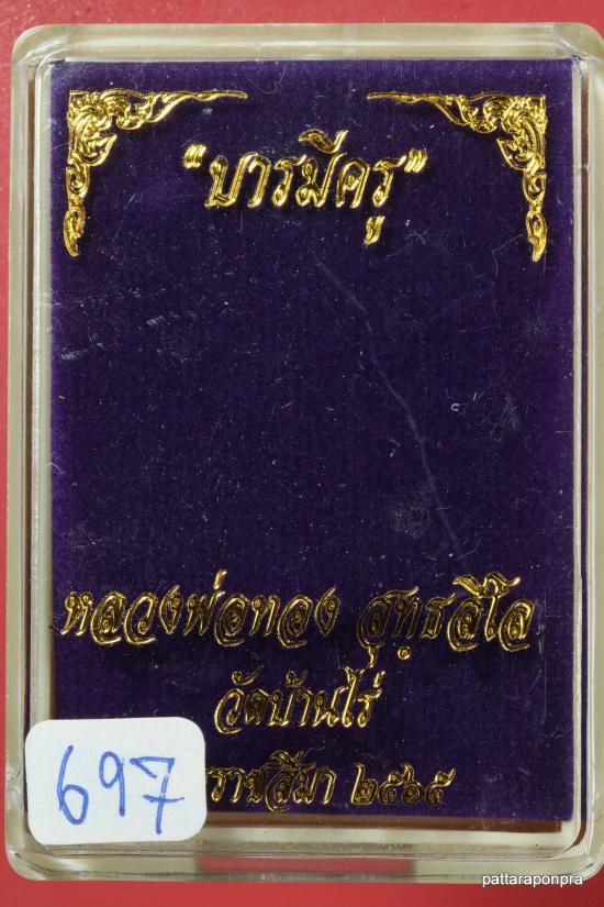 รูปหลวงพ่อทอง รุ่นบารมีครู ปี 2565 หลังเนื้อทองฝาบาตร หมายเลข 697