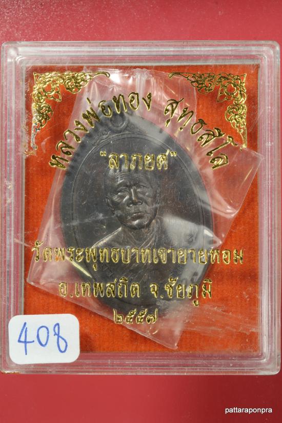 เหรียญหลวงพ่อทอง รุ่นลาภยศ ปี 2557 เนื้อเนื้อชนวนไม่ตัดปีก หมายเลข 408
