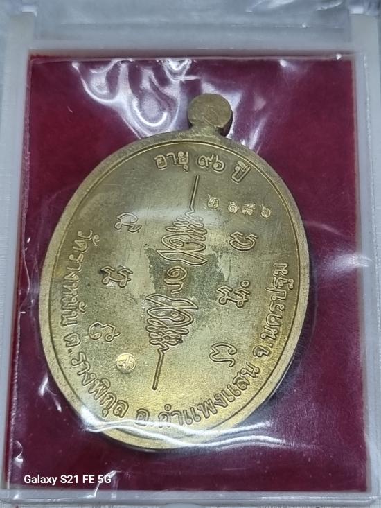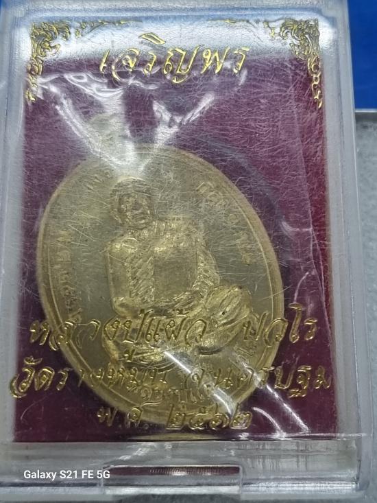 เหรียญหลวงปู่แผ้ว วัดรางหมัน รุ่นเจริญพรบน เนื้อทองฝาบาตร เลข ๒๑๘๖ พร้อมกล่องเดิม (พระมีรอยลาน พิจารณาให้ชอบก่อนปิด)