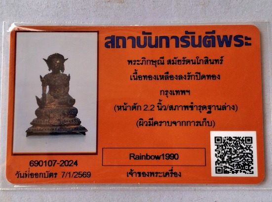 พระบูชา สมัยรัตนโกสินทร์ เนื้อทองเหลือง ลงรักปิดทอง กรุงเทพฯ หน้าตัก2.2นิ้ว