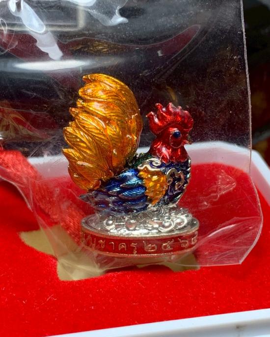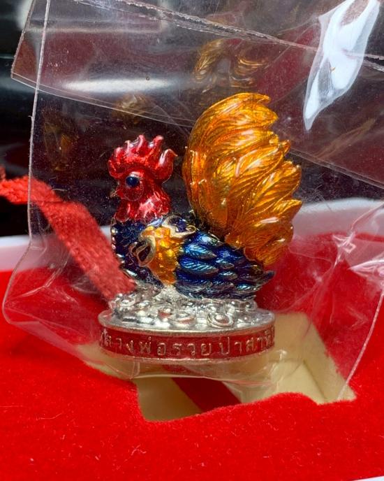 ไก่เนื้อเงิน ลงยาราชาวดี หลวงพ่อรวย ปาสาทิโก รุ่นบูชาครู ออกวัดพระธาตุเชิงเขา ปี 2564 น้ำหนัก 15 กรัม