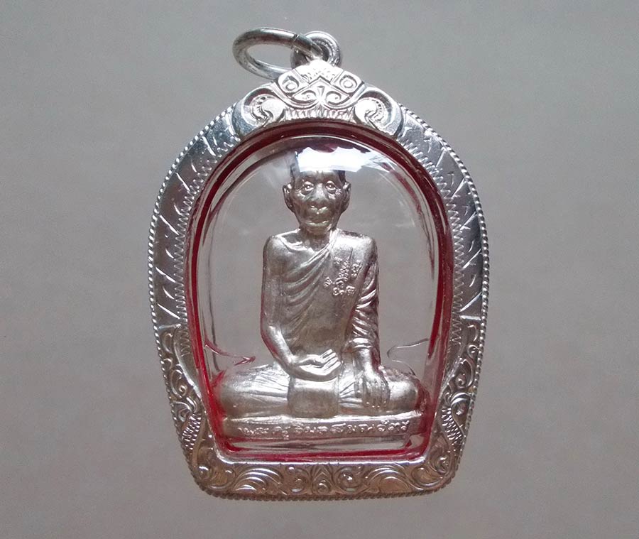 รูปเหมือนปั้ม รุ่นเพชรกลับ หลวงพ่อเพี้ยน วัดเกริ่นกฐิน จ.ลพบุรี ไตรมาส พ.ศ.2555 เนื้อเงิน ตอกโค๊ต ตอกเลข เลี่ยมกรอบเงินยกซุ้มสวยมาก !!