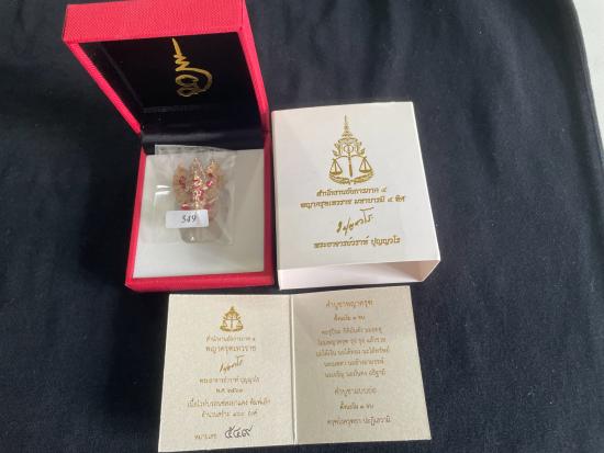 พญาครุฑเทวราช มหาบารมี 4 ทิศ เนื้อไวท์บรอนซ์ลงยาแดง พิมพ์เล็ก ซีลครุฑเดิมยังไม่แกะออก จัดสร้าง 900 องค์ หมายเลข 549 อาจารย์วราห์ ปลุกเสก พร้อมกล่อง เริ่มราคาจอง 2500 บาท