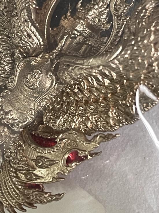 พญาครุฑเทวราช มหาบารมี 4 ทิศ เนื้อไวท์บรอนซ์ลงยาแดง พิมพ์เล็ก ซีลครุฑเดิมยังไม่แกะออก จัดสร้าง 900 องค์ หมายเลข 549 อาจารย์วราห์ ปลุกเสก พร้อมใบรับรองและกล่อง เริ่มราคาจอง 2500 บาท