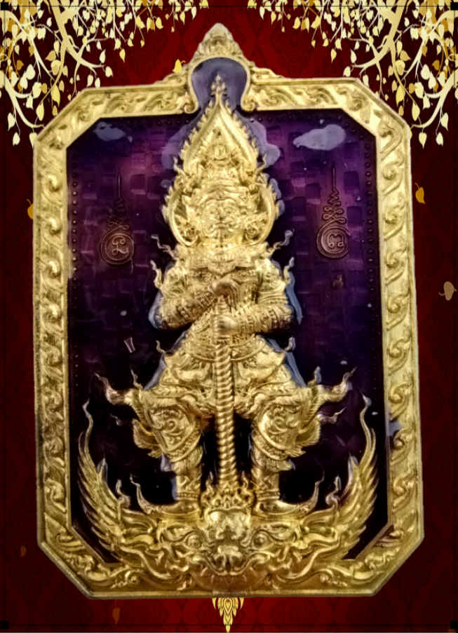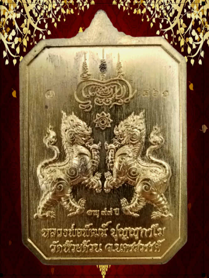 เหรียญแปดเหลี่ยม ท้าวเวสสุวรรณ หลังสิงห์มงคลคู่ หลวงพ่อพัฒน์ วัดห้วยด้วน นครสวรรค์ เนื้อทองเหลืองลงยาม่วง หมายเลข๔๖๑ ปี2563 กล่องเดิม