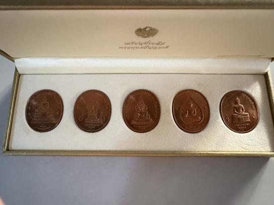 #เคาะเดียว# เหรียญพระพุทธปัญจภาคี หลังในหลวงรัชกาลที่ 9 แบบพิมพ์ใหญ่ ครบชุด 5 เหรียญ เนื้อทองแดง ปี 2539 พร้อมกล่องครบถ้วน |