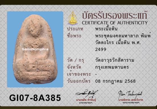 พระมงคลมหาลาภ แม่ชีบุญเรือน โตบุญเติม (พิมพ์ล้อวัดตะไกร) ปี 2499 พร้อมบัตรรับรองสมาคม