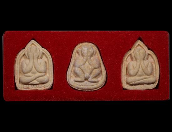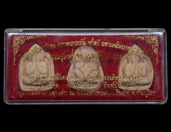 พระปิดตาชุดพระพุทธมงคลชัยมหาลาภ เนื้อผงฝังตระกรุดมหาจักรพรรดิ ปี พ.ศ.2542 จ.พิษณุโลก พระครูเทพย์สร้าง หลวงปู่หมุน ฐิตสีโล พระอาจารย์ตั้ว วัดซับลำไย ปลุกเสก พร้อมกล่องเดิม แดงเคาะแรก |