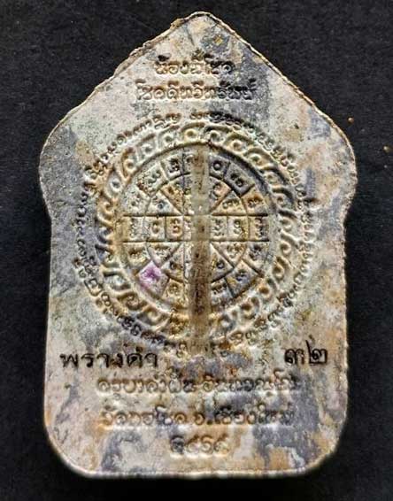 ฝังตะกรุดทองคำ (ใต้ฐาน) ตะกรุดเงิน (ด้านหลัง)