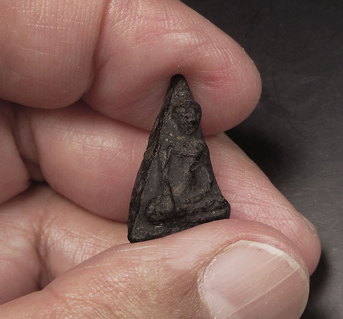 พระพิมพ์นางพญา ขนาดหน้าตักกว้างประมาณ 1.5 ซ.ม. ความสูง 2.2 ซ.ม. เนื้อดินสีดำ พระมีหน้า ตา จมูก ปากครบสมบูรณ์ ผิวเดิม ไม่ผ่านการใช้ ไม่มีรอยแตกบิ่นหรืออุดซ่อม รับประกันตามกฎ