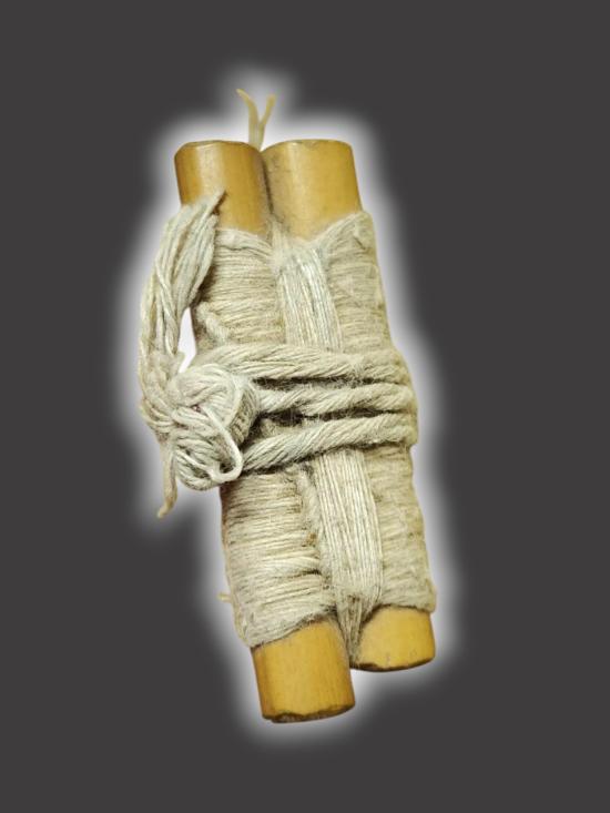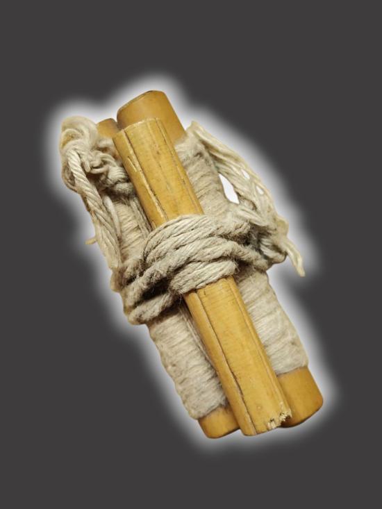 A6809.เครื่องราง ไม้มงคล ของศักดิ์สิทธิ์ พันด้วยสายสิน ไม่ทราบที่ เคาะเดียวเเดง