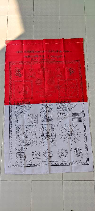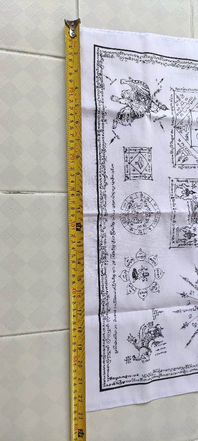 ผ้ายันต์พัดโบกมหาลาภ ยันต์กันฟ้าลง หลวงปู่คร่ำ วัดวังหว้า จ.ระยอง กว้าง23นิ้ว ยาว38นิ้ว