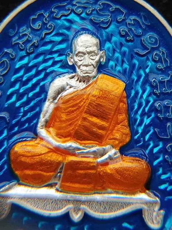 เหรียญหลวงพ่อพัฒน์ รุ่นเจริญพร2 (สร้างโรงพยาบาล) เนื้อเงินลงยาสีฟ้า(พิมพ์เต็มองค์) หมายเลขสวยๆ NO.5931 เคาะเดียวแดงครับ