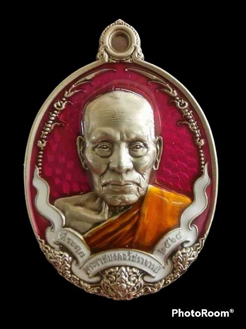 เนื้ออัลปาก้าซาติน ลงยาชมพู โบว์ขาว เหรียญที่ระลึก หลวงพ่อพัฒน์ วัดห้วยด้วน