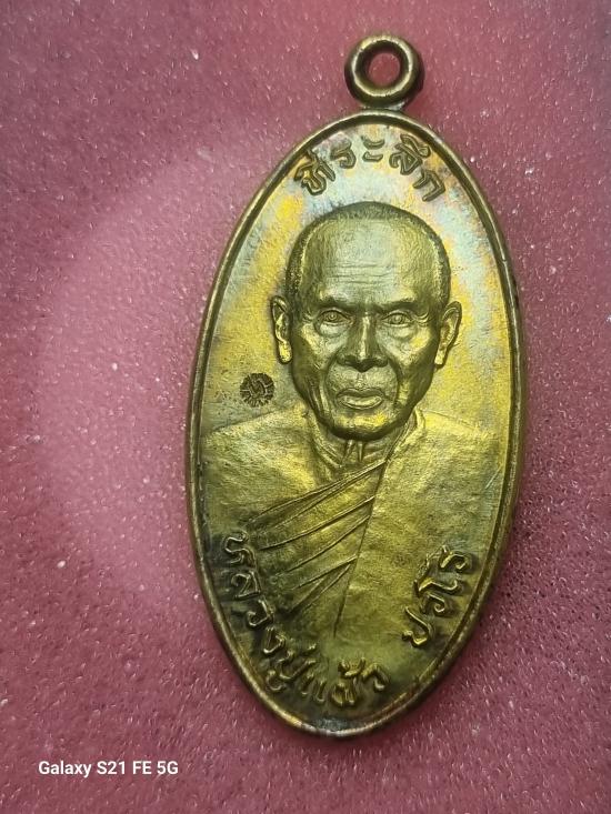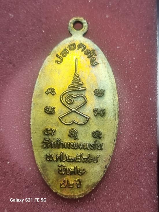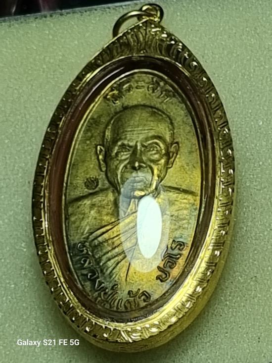 เหรียญใบขี้เหล็ก รุ่นแรก เนื้อทองฝาบาตร ปี 2547 หลวงปู่แผ้ว วัดกำแพงแสน พร้อมเลี่ยมทองคำแท้