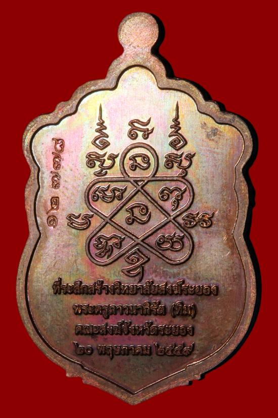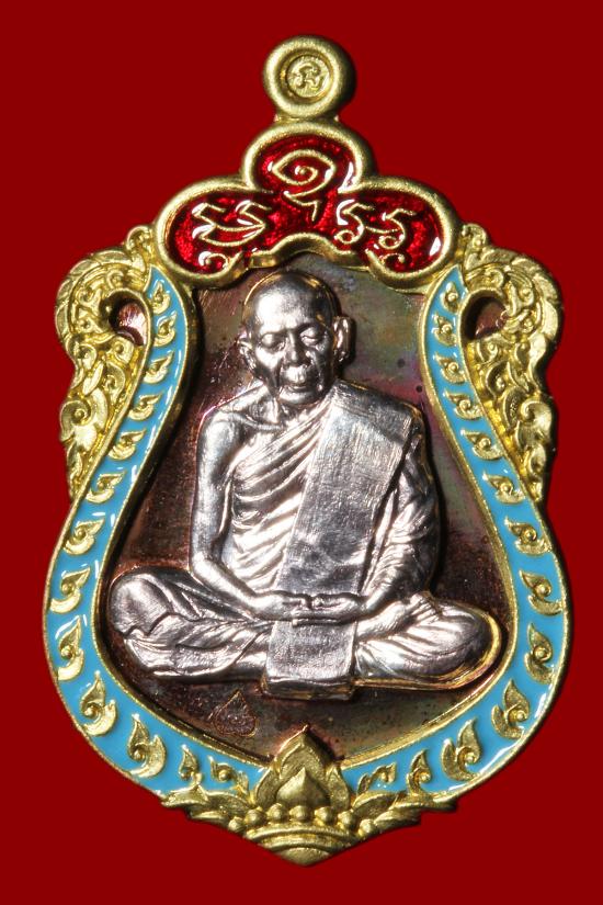 หลวงปู่ทิม วัดละหารไร่ เหรียญเสมา รุ่น มหาบารมี 59 เนื้อทองแดงมันผิวรุ้ง ลงยา หน้ากากเงิน ขอบปลอกลูกปืนลงยา หมายเลข 12778 |