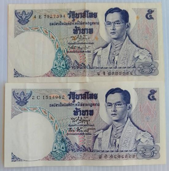ธนบัตรเก่า ( ร.9) 5 บาท จำนวน 4 ใบ