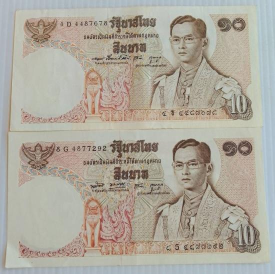 ธนบัตร แบงค์10 บาทรัชกาลที่9 โทมัสแบบ11 ด้านหลังรูปวัดเบญจมบพิตร จำนวน 5 ใบ