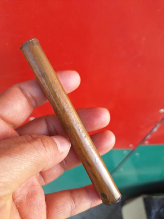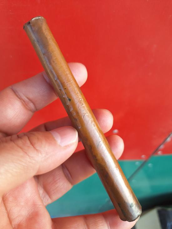 ตะกรุดเปลือยทองแดงเก่า ไม่ทราบที่ ยาวประมาณ 5 นิ้ว