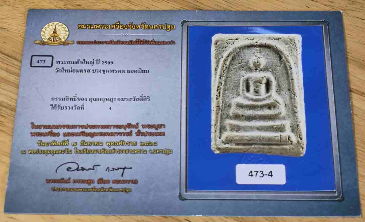 พระสมเด็จวัดใหม่อมตรส พิมพ์ใหญ่ เนื้อผง พร้อมบัตร