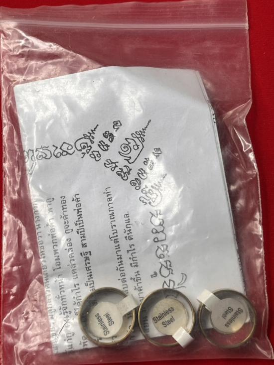 แหวนอลูมินั่มชุบทอง รุ่นเมตตาคุ้มภัย ค้าขายร่ำรวย จารเต็มสูตร รอบวงครับ หลวงพ่อเปิ่น วัดบางพระ นครปฐม 2546 ขนาดแหวน18 มี3วง |