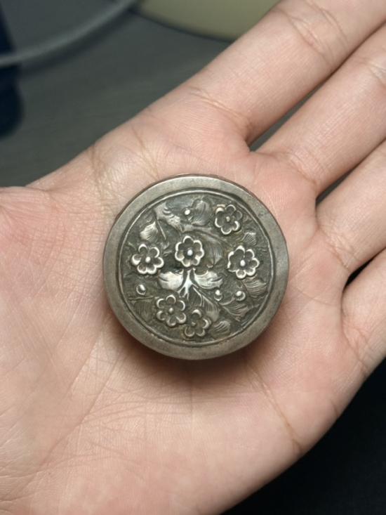 ตลับสีผึ้ง เนื้อเงินเก่า ตอก ภาษาจีน หนัก 17 กรัมกว่าๆๆๆ เงินเปอเซ็นต่ำหน่อย งานจีนเก่า